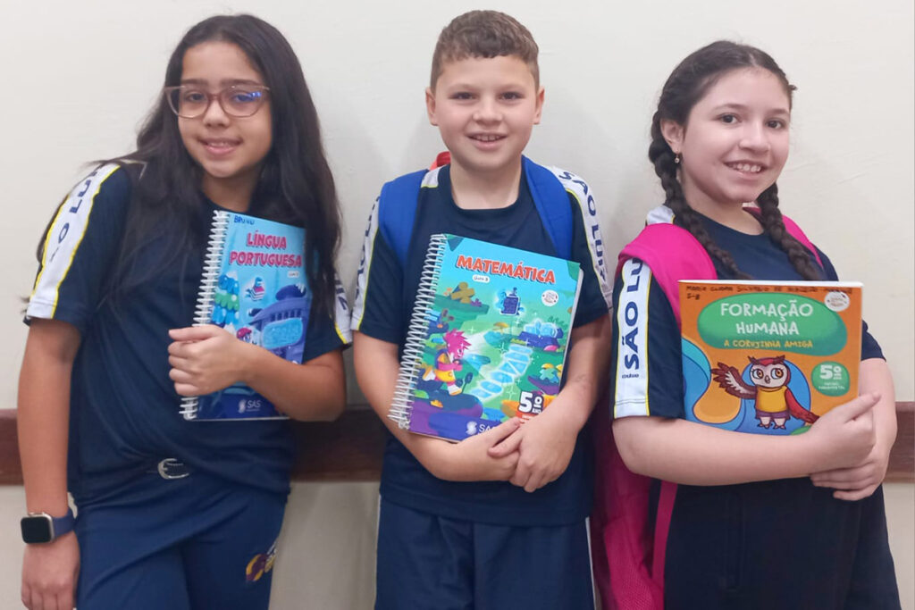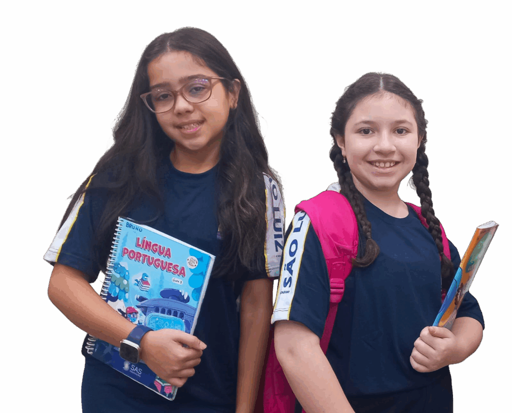 Nesta fase de aprendizagem, os alunos utilizam o material didático do SAS, elaborado por autores especialistas, com conteúdo atualizado que se destaca pela abordagem e linguagem adequadas, tornando o saber científico acessível e interessante. Esse material promove a construção do conhecimento de forma dinâmica, estimulando a curiosidade e a exploração dos estudantes.